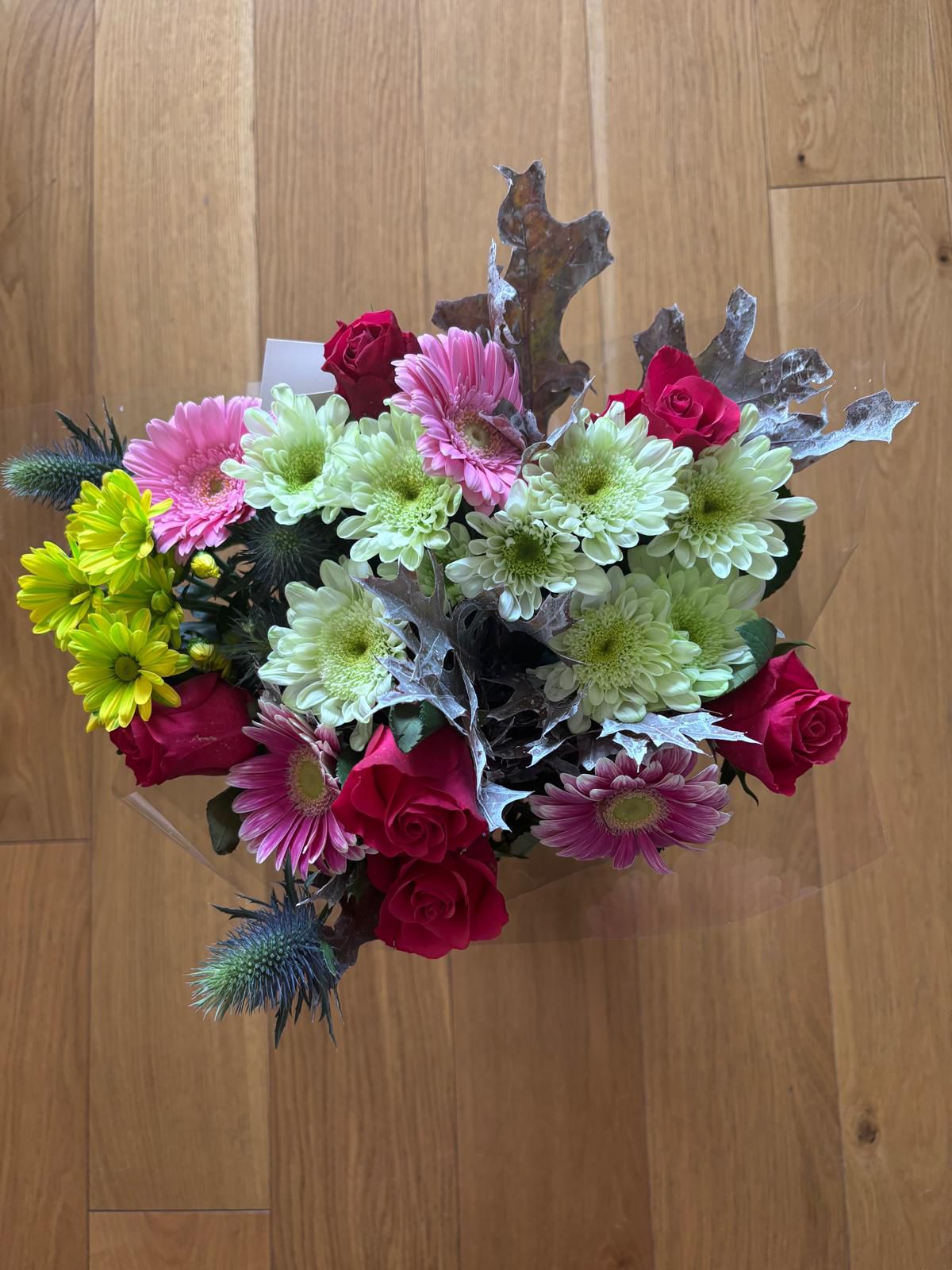 Przepiękny bukiet pełen świeżych kwiatów. Zamówiłam go z Anglii specjalnie na imieniny mamy. Gorąco polecam! P.S. kurier również zachwycił oko ;)